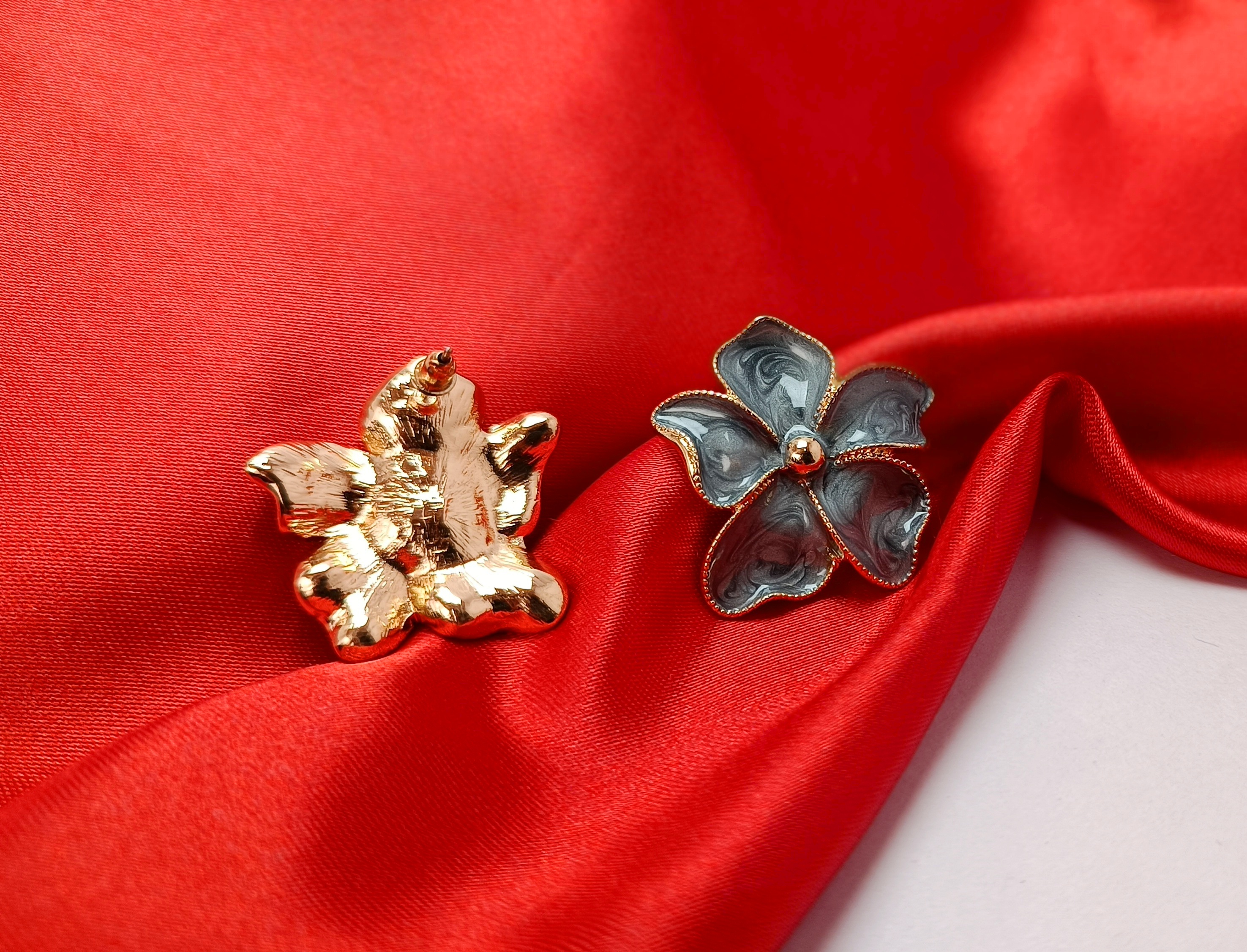 Elegant and mysterious, the Midnight Bloom Korean Floral Stud Earrings are designed for women who love subtle luxury. Featuring translucent charcoal-black floral petals with soft marble detailing, these earrings are finished with a delicate gold-tone outline and a polished golden center. The deep smoky shade paired with warm gold accents creates a refined contrast, making these studs perfect for evening wear, festive outfits, and modern ethnic looks. Inspired by flowers blooming under moonlight, the Midnight Bloom earrings offer a graceful blend of minimalism and glamour. The glossy resin petals catch light beautifully, while the intricate gold edging adds a couture finish. Lightweight and skin-friendly, they ensure comfort without compromising on style.