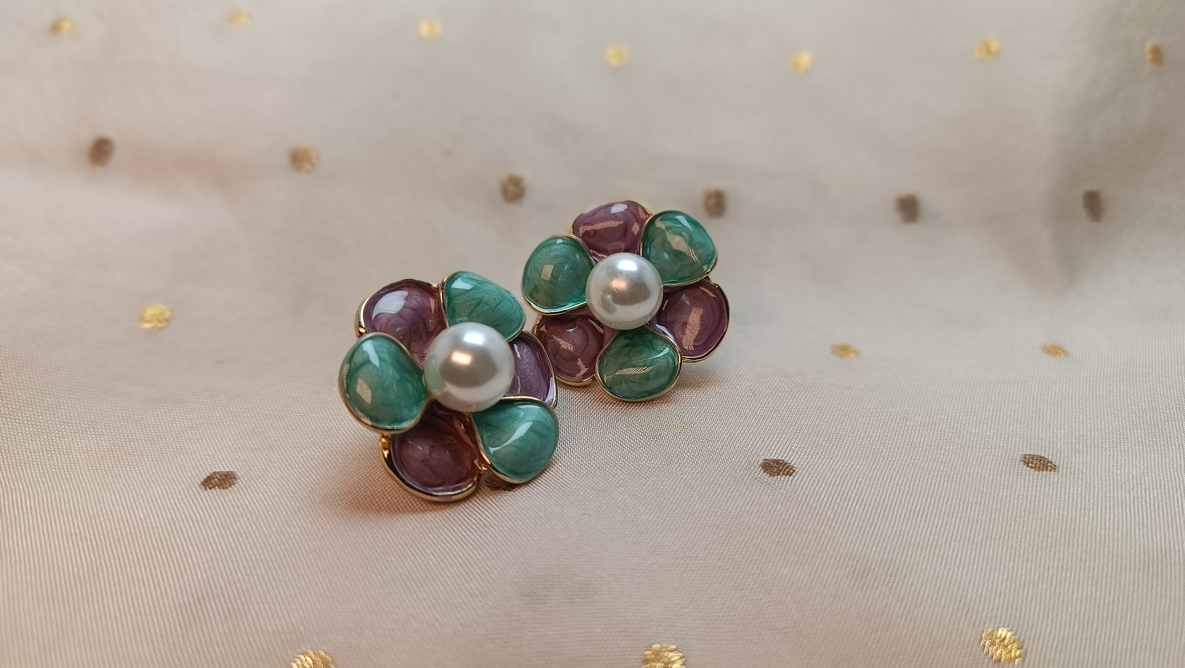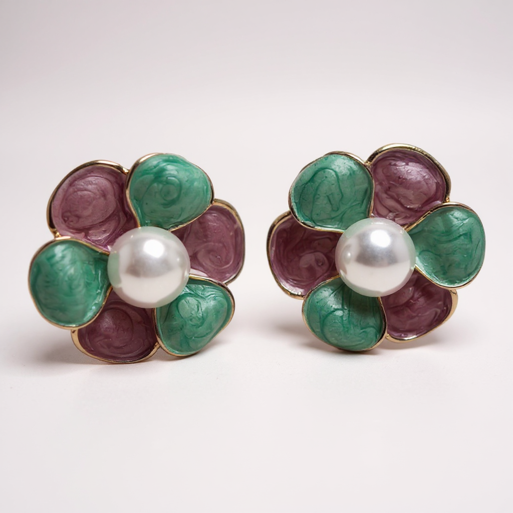 Add a touch of soft elegance to your everyday and festive looks with these beautifully crafted Floral Pearl Stud Earrings. Designed in a charming flower shape, these earrings feature pastel pink and teal petals with a luminous pearl at the center, creating a perfect balance of modern style and graceful femininity. Lightweight and comfortable, they are ideal for long wear and effortlessly elevate any outfit. Whether paired with ethnic wear or western outfits, these earrings bring a subtle luxury that never goes out of style.