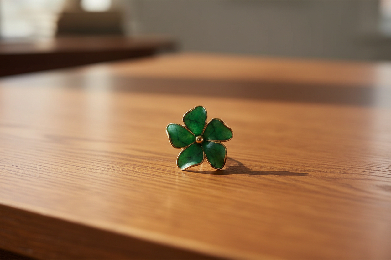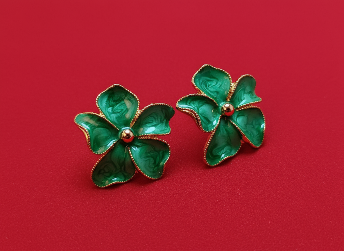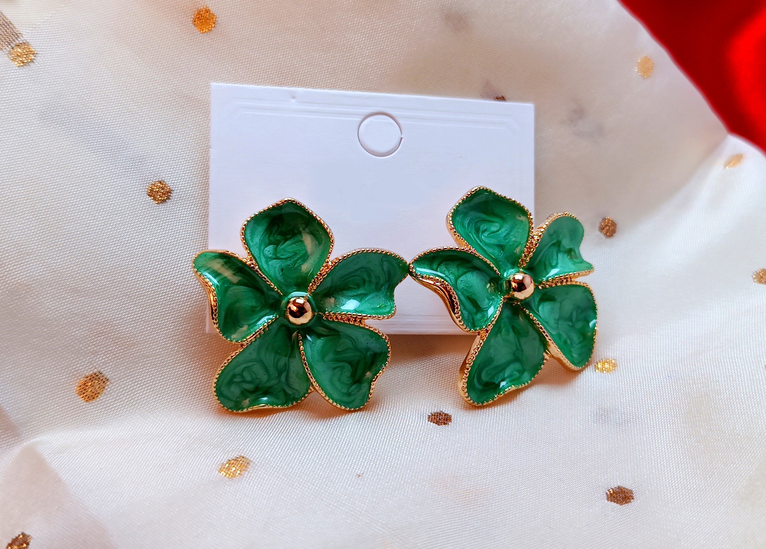 Elegant and mysterious, the Midnight Bloom Korean Floral Stud Earrings are designed for women who love subtle luxury. Featuring translucent charcoal-black floral petals with soft marble detailing, these earrings are finished with a delicate gold-tone outline and a polished golden center. The deep smoky shade paired with warm gold accents creates a refined contrast, making these studs perfect for evening wear, festive outfits, and modern ethnic looks. Inspired by flowers blooming under moonlight, the Midnight Bloom earrings offer a graceful blend of minimalism and glamour. The glossy resin petals catch light beautifully, while the intricate gold edging adds a couture finish. Lightweight and skin-friendly, they ensure comfort without compromising on style.