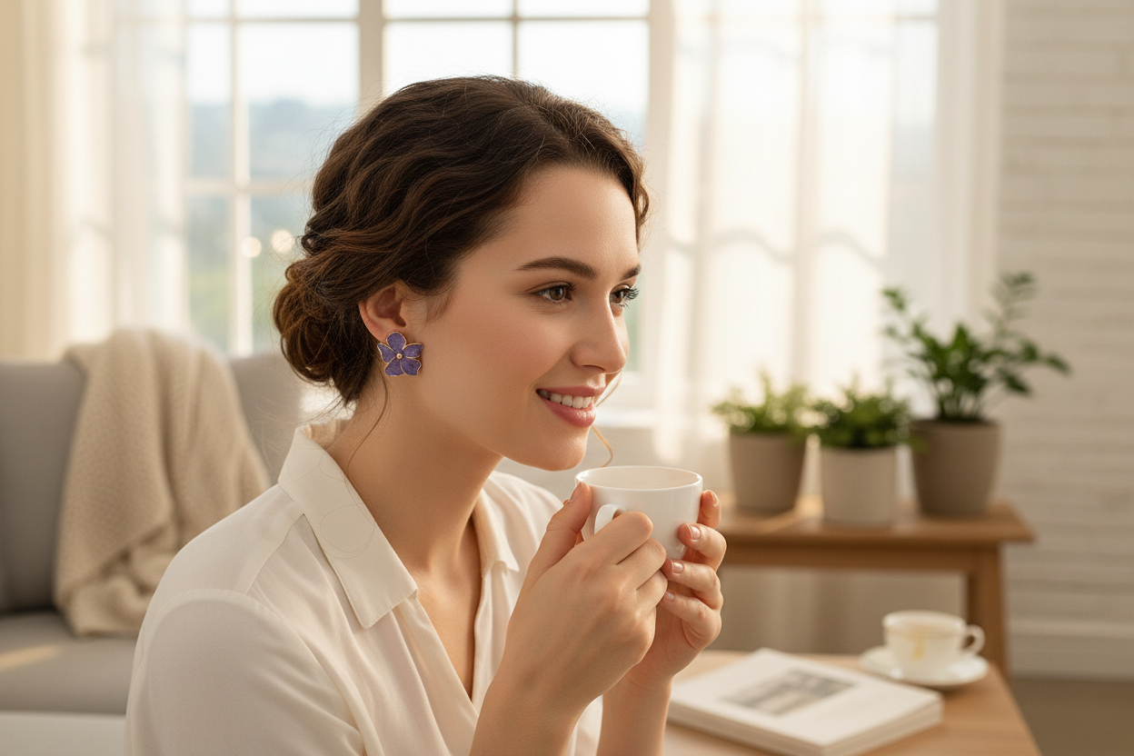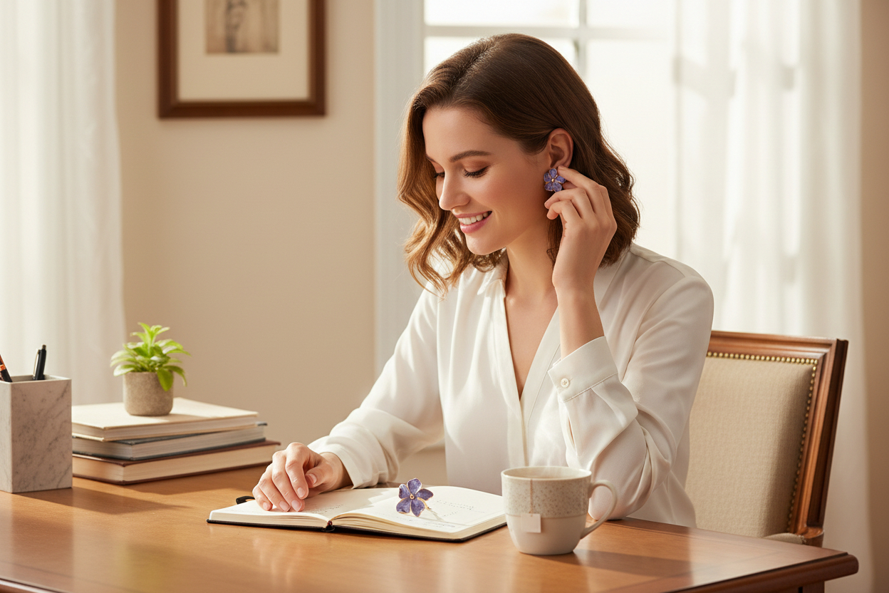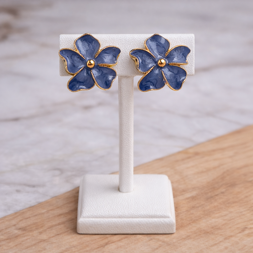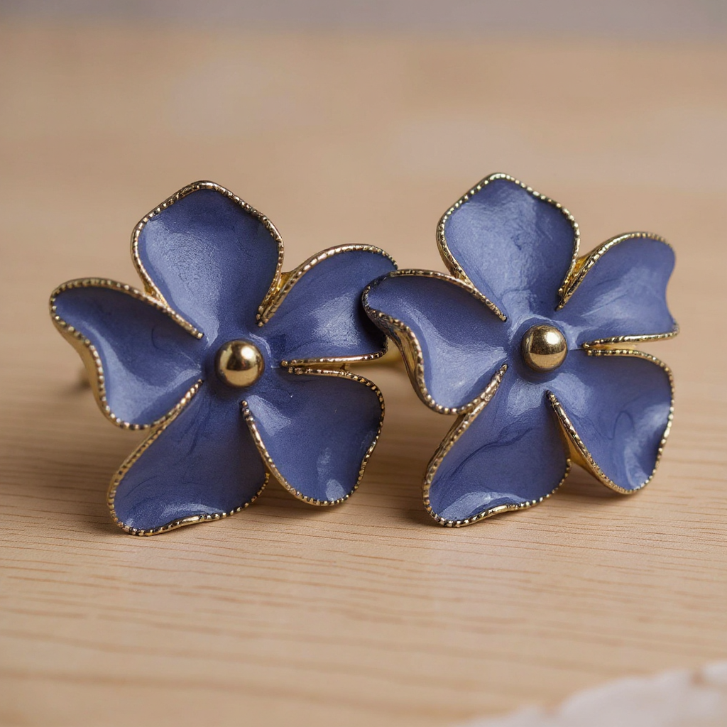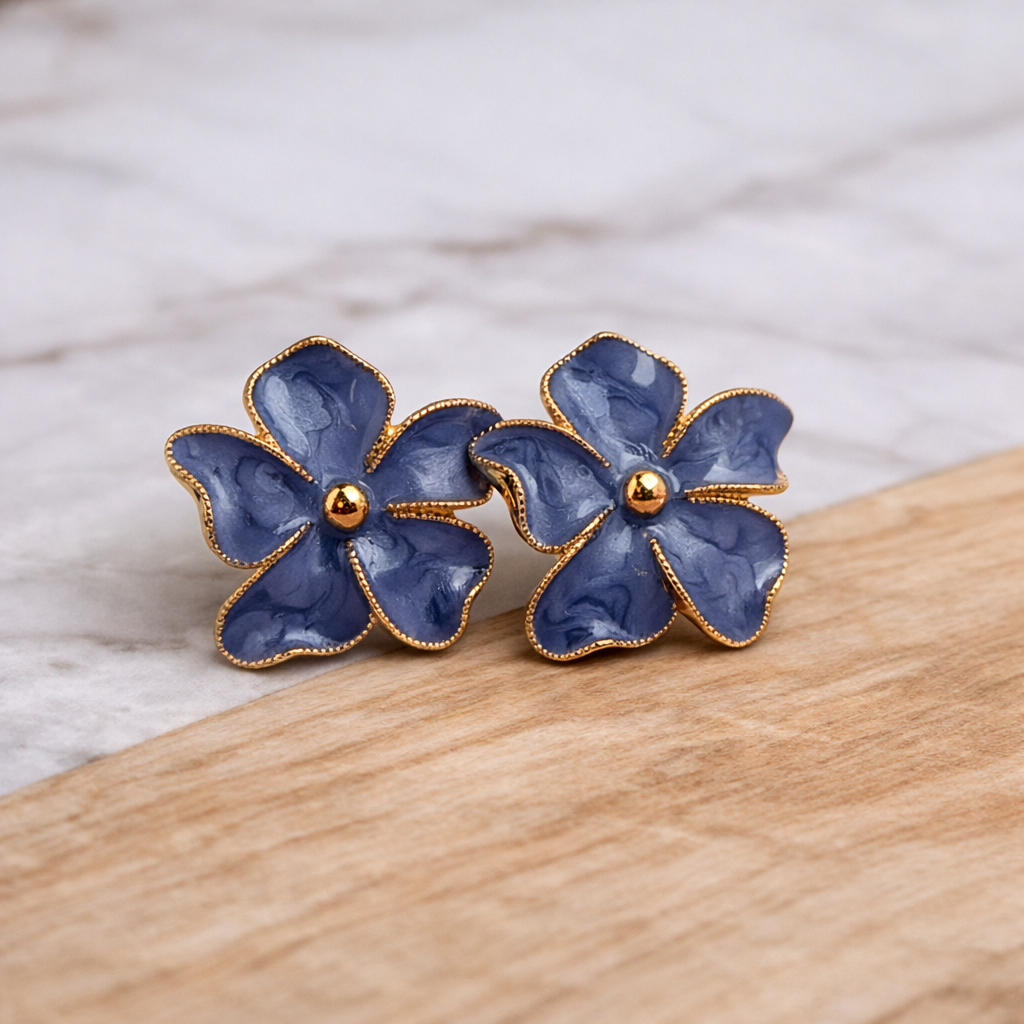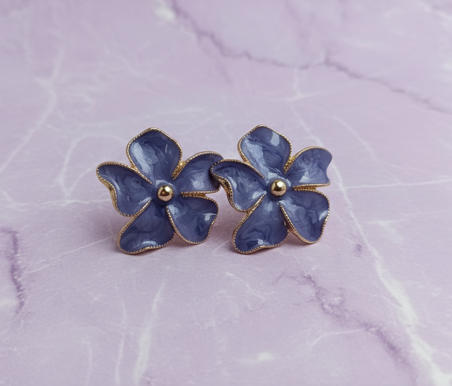 Elegant and mysterious, the Midnight Bloom Korean Floral Stud Earrings are designed for women who love subtle luxury. Featuring translucent charcoal-black floral petals with soft marble detailing, these earrings are finished with a delicate gold-tone outline and a polished golden center. The deep smoky shade paired with warm gold accents creates a refined contrast, making these studs perfect for evening wear, festive outfits, and modern ethnic looks. Inspired by flowers blooming under moonlight, the Midnight Bloom earrings offer a graceful blend of minimalism and glamour. The glossy resin petals catch light beautifully, while the intricate gold edging adds a couture finish. Lightweight and skin-friendly, they ensure comfort without compromising on style.