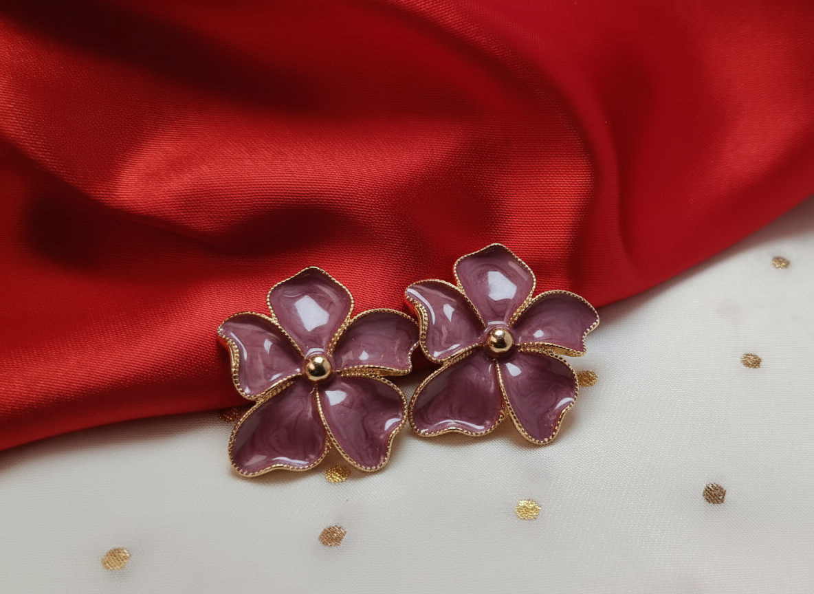 Rosewood Bloom Korean Floral Stud Earrings