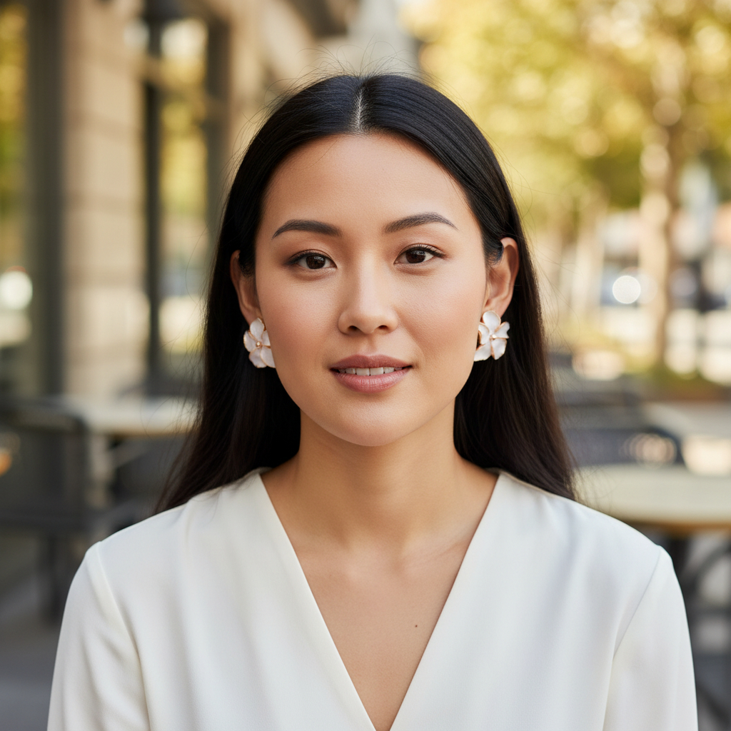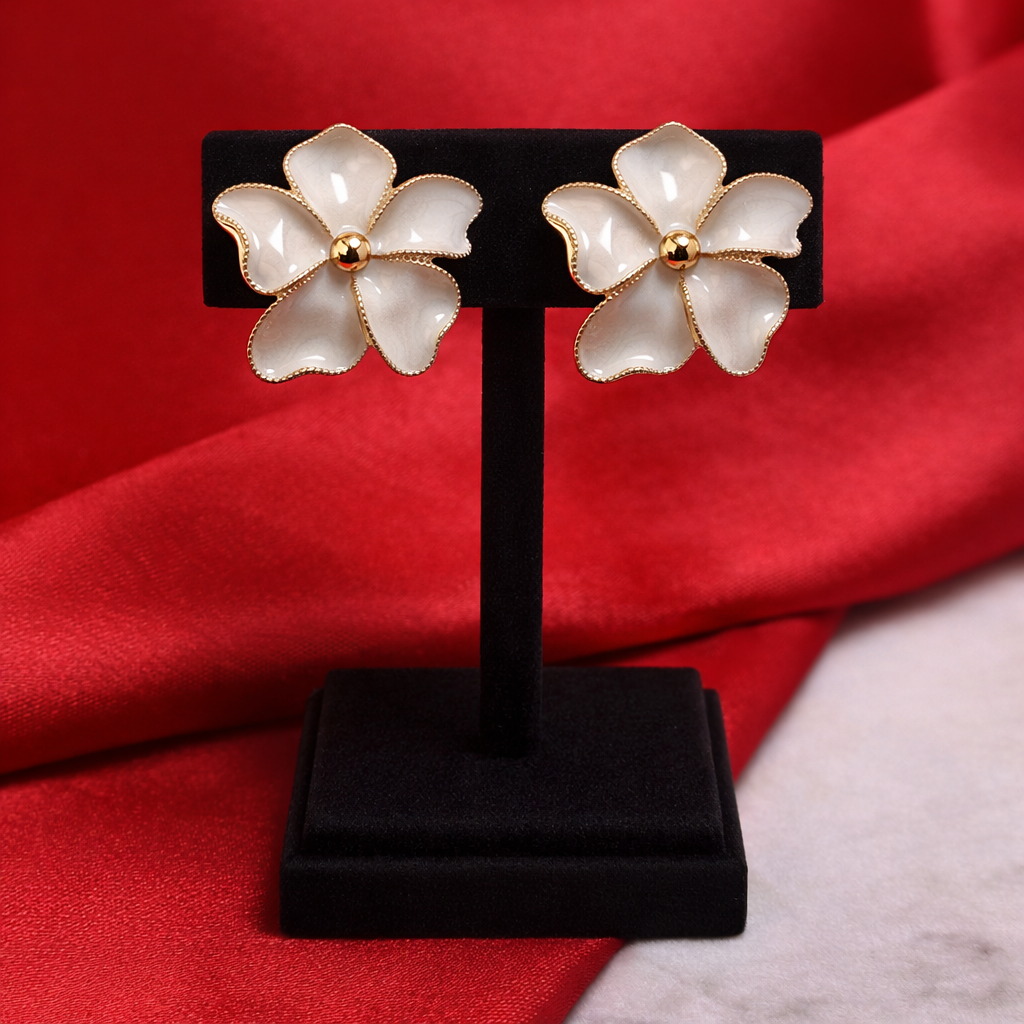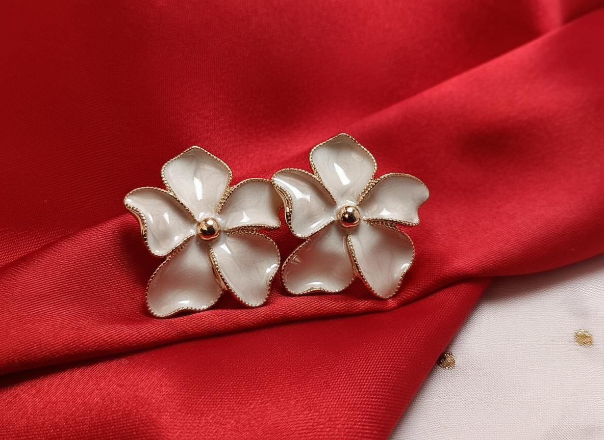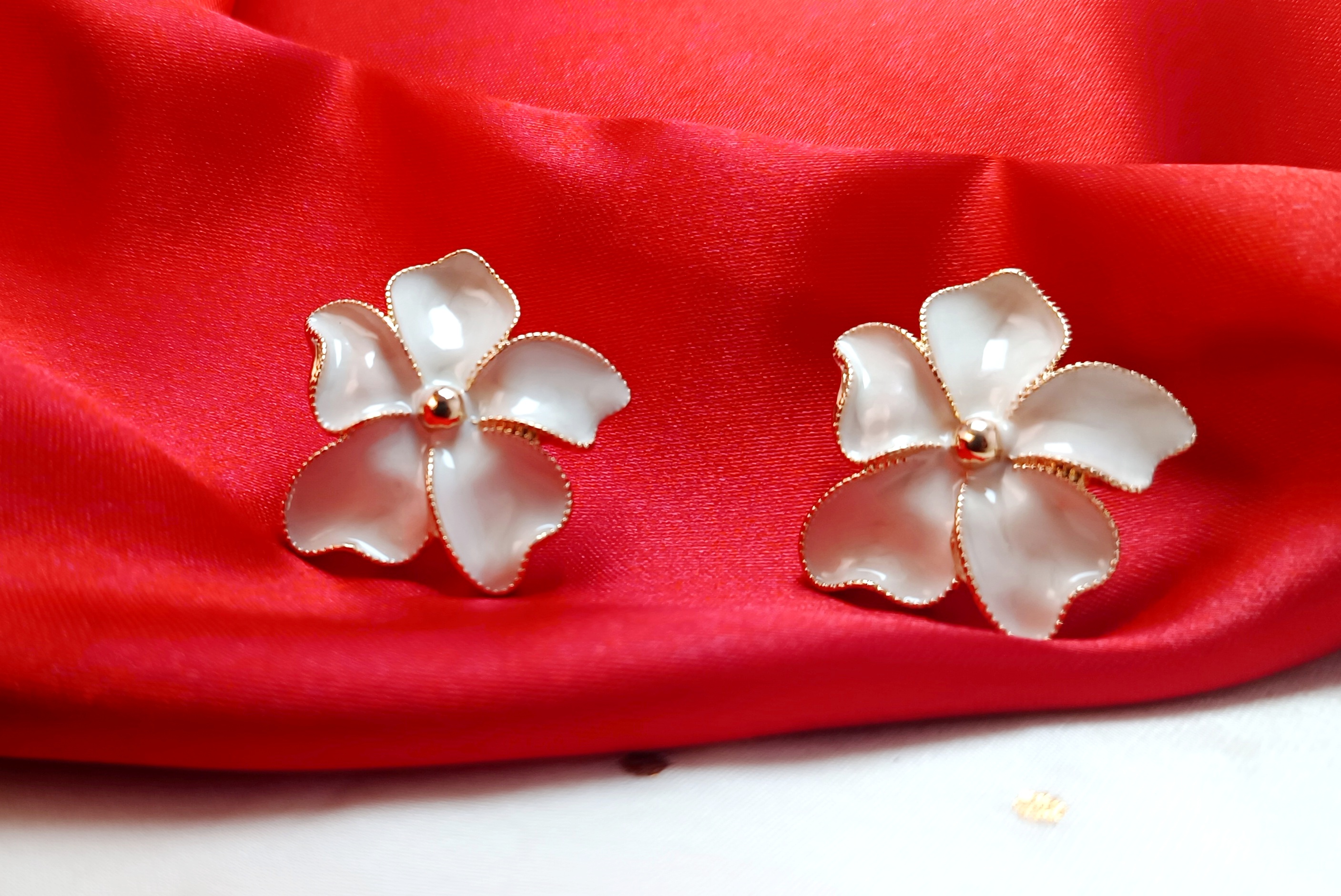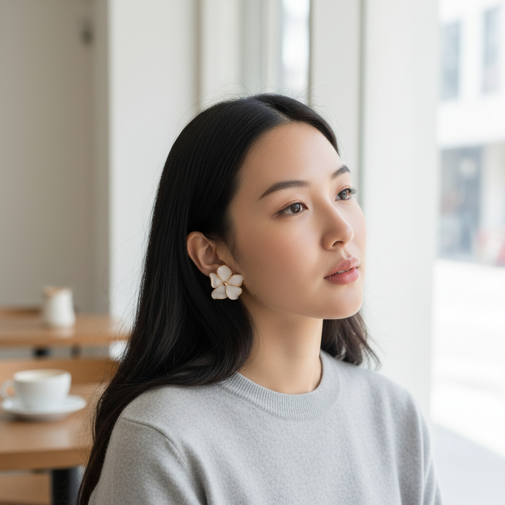Elegant and mysterious, the Midnight Bloom Korean Floral Stud Earrings are designed for women who love subtle luxury. Featuring translucent charcoal-black floral petals with soft marble detailing, these earrings are finished with a delicate gold-tone outline and a polished golden center. The deep smoky shade paired with warm gold accents creates a refined contrast, making these studs perfect for evening wear, festive outfits, and modern ethnic looks. Inspired by flowers blooming under moonlight, the Midnight Bloom earrings offer a graceful blend of minimalism and glamour. The glossy resin petals catch light beautifully, while the intricate gold edging adds a couture finish. Lightweight and skin-friendly, they ensure comfort without compromising on style.